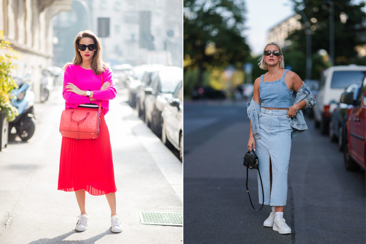 A szoknya és az edzőcipő kombinációja nagyon meredek pályán mozog, hiszen ez az ütős stílusmix még mindig sokaknál veri ki a biztosítékot, ám kétségtelen, hogy nem véletlenül kapta fel annyira az utcai divat. Egyáltalán nem rombolja le a nőiességet, ha a midiszoknya egy kényelmes lábbelivel társul, sőt, egy efféle párosítás izgalmassá teszi az átmeneti outfiteket. Teljesen mindegy, hogy harangszoknyával vagy ceruzafazonnal kísérletezel, még a zoknid is kikandikálhat a cipőből, ha sportos irányba mozdítod az összképet, nem lesz furcsa az összkép, amennyiben odafigyelsz az előnyös testtagolásra.