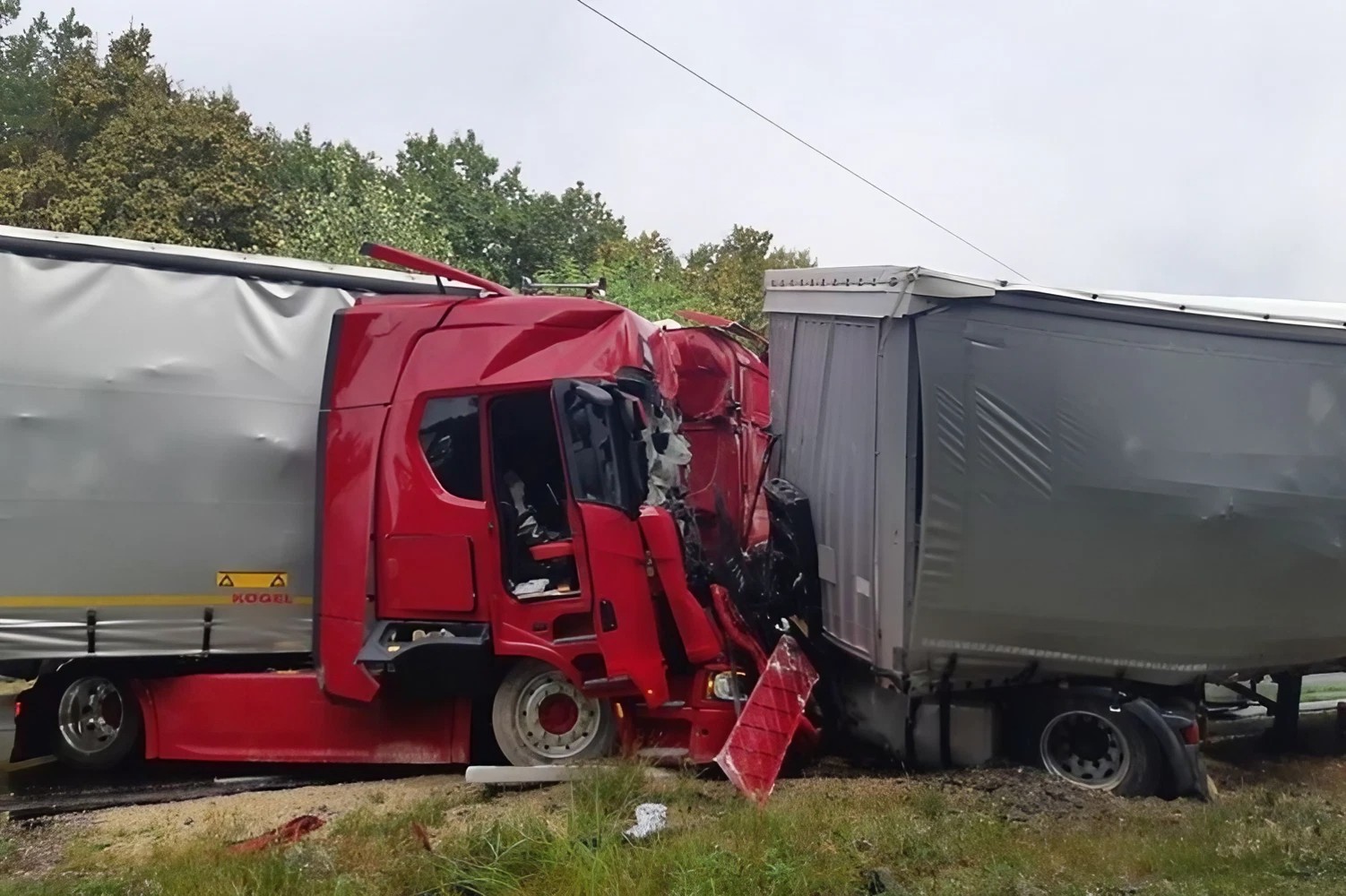 Helyszíni fotókon a 86-oson történt kamionbaleset: nagy erejű volt az ütközés