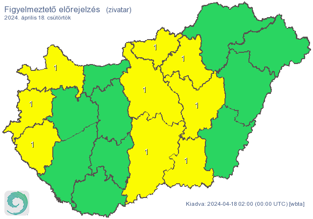 Az előrejelzés szerint elszórtan várhatók záporok, hódara záporok, elsősorban a Duna-Tisza közén zivatar kialakulása sem kizárt.