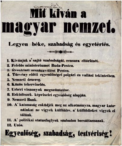 1848. március 15-én az európai városok sorában Pest-Budán is kitört és győzött a forradalom a nemzeti és az egyetemes emberi szabadság, a polgári átalakulás jelszavaival.