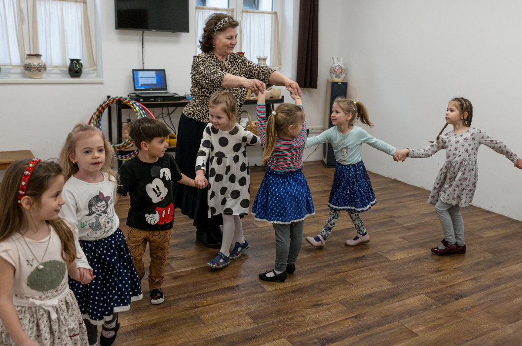 Ági – A fegyelmet mindenképpen meg kell követelni, mert együtt kell mozdulniuk, de természetesen mindent játékosan közelítünk meg, és tulajdonképpen észre sem veszik, de játék közben tanulják meg a lépéseket. A néptánc tele van fejlesztő elemekkel, stimulálja az agyat és mindemellett a mai gyerekeknek nagy igénye van a játékra.