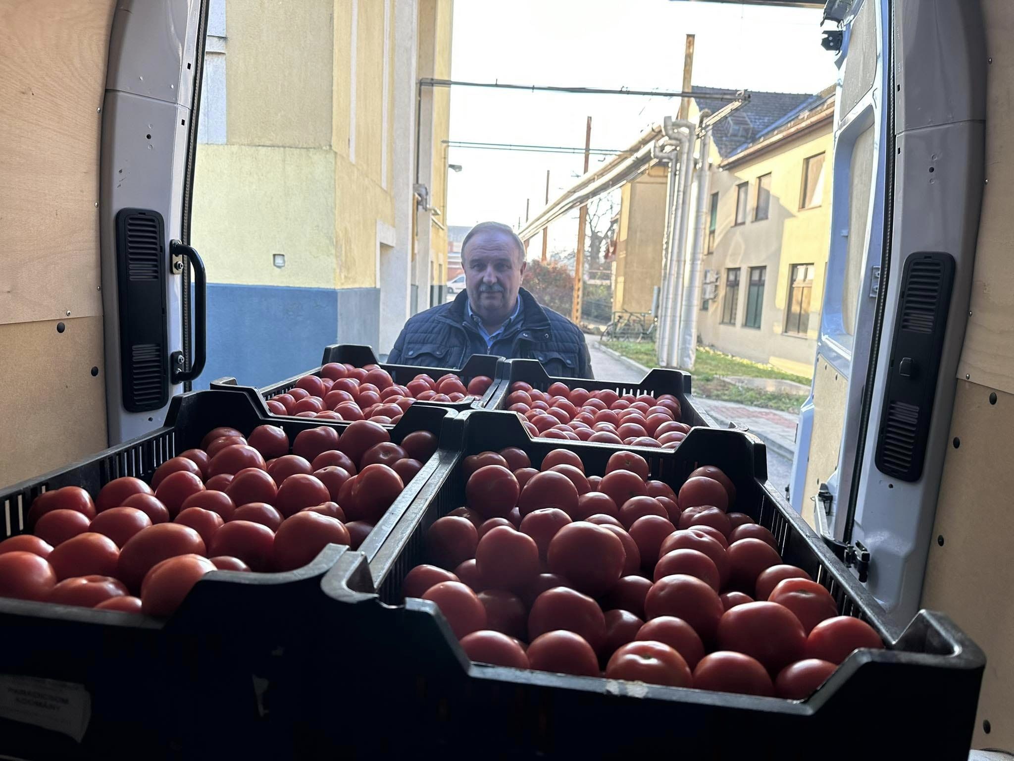 A csornai kórháznak nem először ajánlanak fel zöldséget vagy gyümölcsöt. Idén 200 kg paradicsomot vittek, melyet Családi János adott át Dr. Winiczai Zoltán igazgatónak.