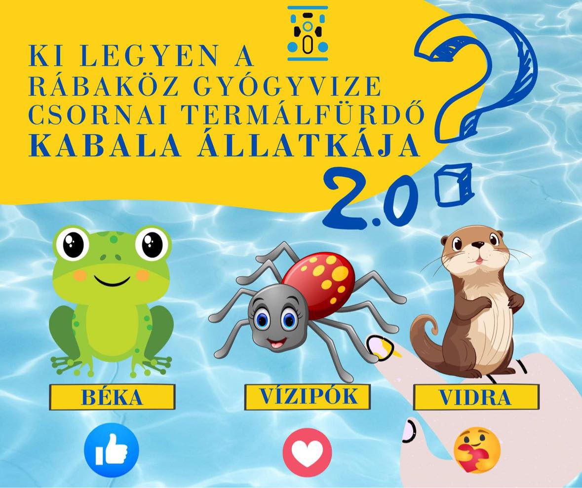 A lakosság szavazatai alapján döntik el, melyik Rábaközben is fellelhető állatka legyen a nyerő, béka, vidra vagy vízipók. Dr. Bónáné Dr. Németh Katalin közösségi oldalán a szavazás elstartolt.