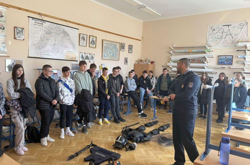 A diákok betekinthettek a rendőri munkába, megismerhették az egyenruhások által használt szolgálati eszközöket, felszereléseket, és tájékoztatást kaptak a jelentkezés feltételeiről.
