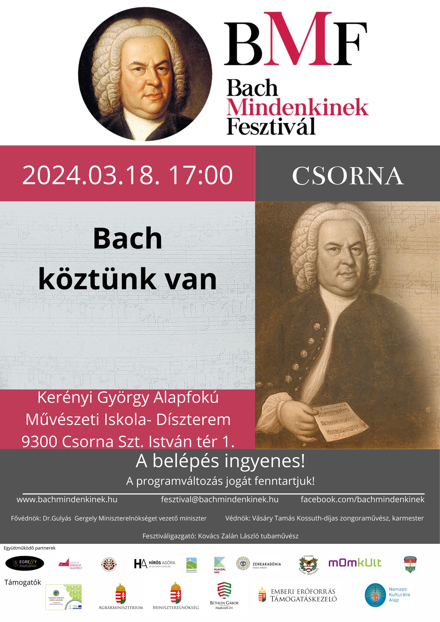 A csornai Kerényi György Alapfokú Művészeti Iskola ismét csatlakozott a Bach Mindenkinek Fesztiválhoz, amely az elmúlt 10 év alatt hazánk legnagyobb, legkiterjedtebb komolyzenei eseménysorozatává nőtte ki magát.