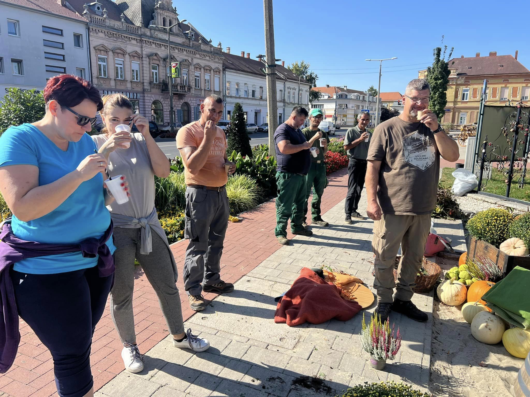 A városi dekoráció elkészítése közben Fazakas Zoltán Márton premontrei apát váratlanul felbukkant, és frissítő itallal lepte meg a városüzemeltetési cég munkatársait. Az apát elmondta, hogy mélyen hálás a Vilmospark Kft. csapatának a munkájukért és azért, hogy minden évben szebbé teszik az őszt Csornán.
