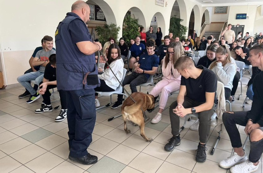 A fiatalok rendészeti szaktantárgya lett színesítve a kábítószerekről tartott előadással. Ahol is az elmélet mellett Tremmel Nándor r. főrtöszzászlós kábítószer-kereső kutyájával, Spurival bemutatta, hogyan is történik a keresés.