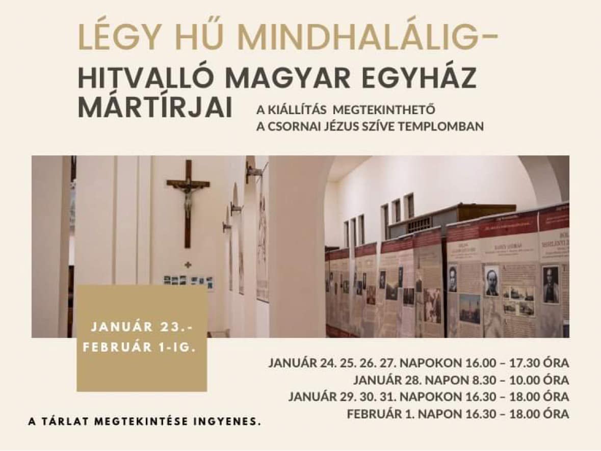 Csornán a Jézus Szíve Templomban még egy napig van lehetőség a „Légy hű mindhalálig – Hitvalló magyar egyház mártírjai” című kiállítás megtekintésére.