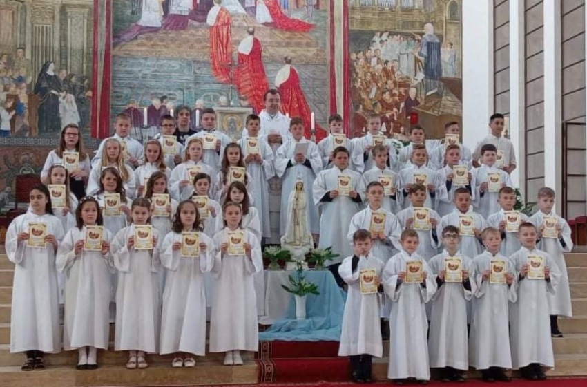 Valóra vált 40 gyermek vágyakozása, amikor életükben először járultak szentáldozáshoz. Három éven keresztül igyekeztek, hogy mind jobban megismerjék Jézust, és készültek arra, hogy szívükbe fogadják őt. A szülők, keresztszülők, nagyszülők, rokonok és a hívek, talán a saját elsőáldozásukat idézhették fel, amikor a gyerekek tiszta lélekkel, fehér ruhájukban bevonultak a templomba. Hallani és látni lehetett, hogy szívvel-lélekkel imádkoztak. Meghitt pillanat volt, mikor várakozással telve léptek Balázs atya elé, és áhítattal az arcukon vették magukhoz a szentostyában jelenlévő Úr Jézust. Megérezték és megértették, hogy életükben valami fontos történt. Találkozhattak Valakivel, aki eddig is óvta lépéseiket: barátjukkal Jézussal. Ezt köszönték meg áldozás utáni imájukban. Balázs atya buzdította a gyerekeket arra, hogy tegyenek minél több jót, legyen gyakran vendégük Jézus, mert az életük csak így lesz szép és örömteli. A gyerekek hálájukat fejezték ki a Szűzanya felé, amikor másnap közösen részt vettek az esti szentmisén és a májusi litánián.