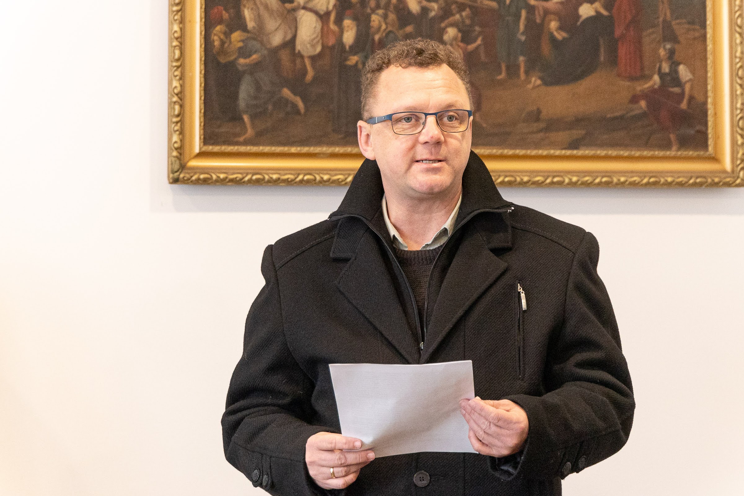 „Az emléktáblák nemcsak az emlékállításról, hanem az ahhoz vezető útról is mesélnek” – kezdte beszédét Szalay Balázs. Elmondta, hogy a kezdeményezés 2020-ban indult, amikor levelet írt Csutiné Schleer Erzsébet építészmérnöknek, aki Klemens Antal életét és munkásságát kutatta. Ennek nyomán vette fel a kapcsolatot a Klemens családdal, akik 2022-ben ellátogattak Csornára. A látogatás során döntött úgy a család, hogy emléktáblát adományoznak a templomnak, melyet idén nyáron hoztak el a városba.