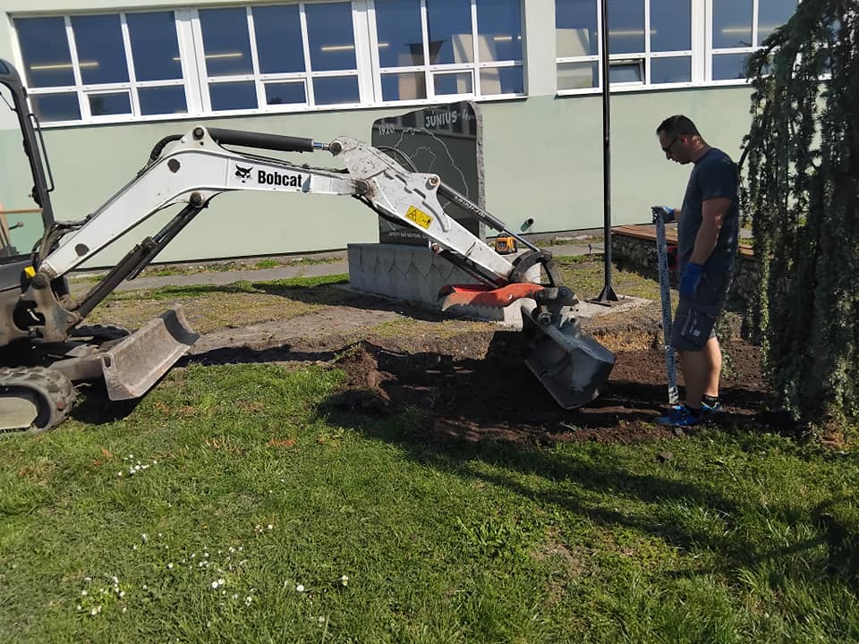 Elkezdődött Csornán a Trianoni Emlékmű térkövének felújítása.