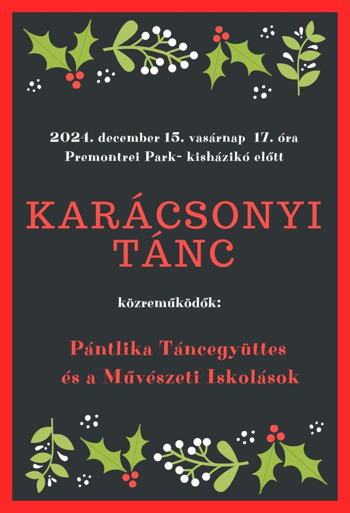 December 15-én, vasárnap 17 órától ünnepi táncelőadásra kerül sor a Premontrei Parkban, a kisházikó előtt.