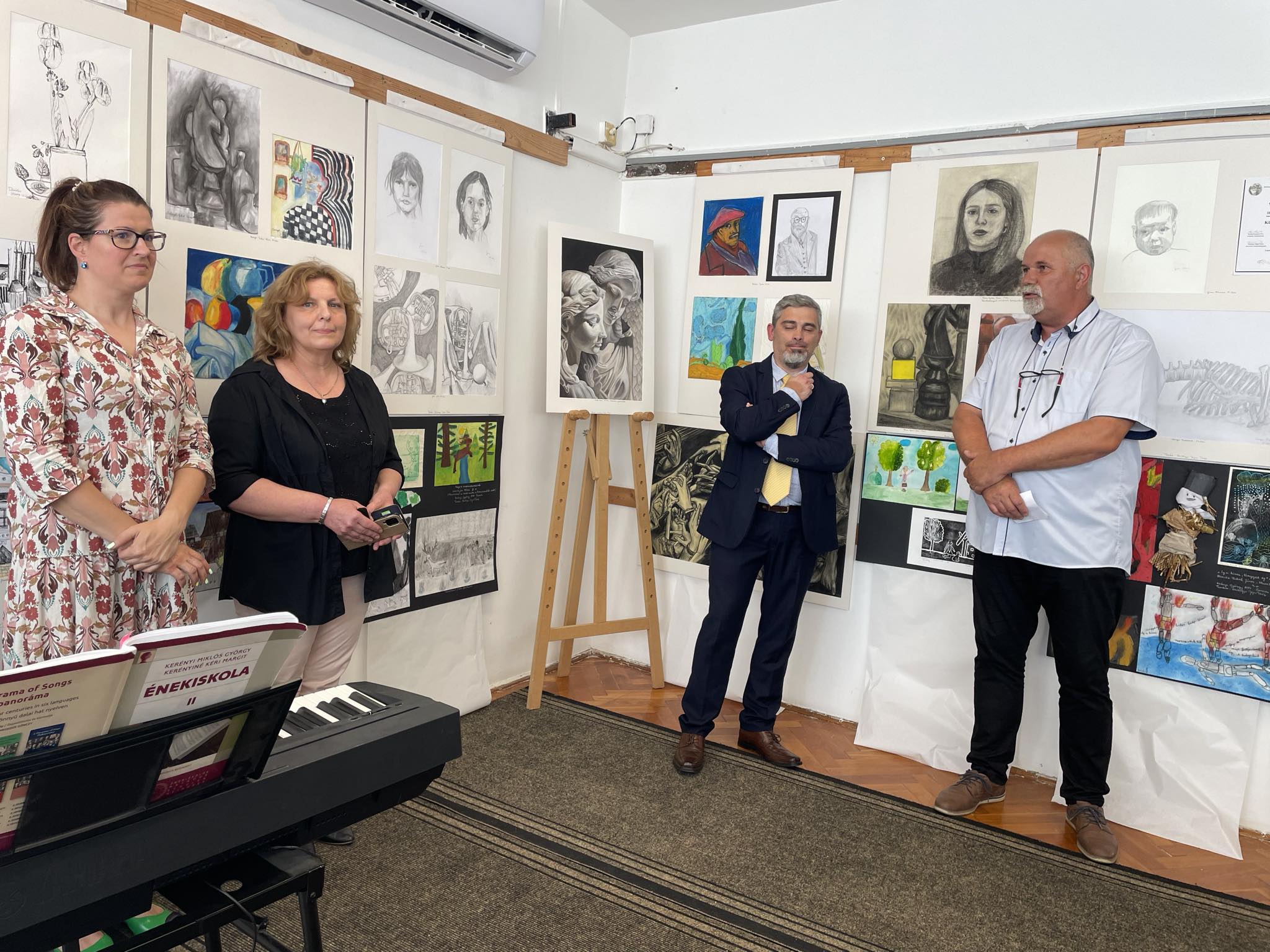 A rendezvényen közel 100 növendék munkái mellett helyet kaptak alapvizsgás tanulóink vizsgaportfóliói is, melyeket felkészítő tanáraik, Balogh-Tatai Renáta, Szilágyi-Jéger Teréz és Pénzes-Tatai Ágnes segítettek összeállítani. Biky Ottó igazgató köszöntőjét követően beszédet mondott Dr. Kovács Róbert, a Soproni Tankerületi Központ szakmai igazgató helyettese.