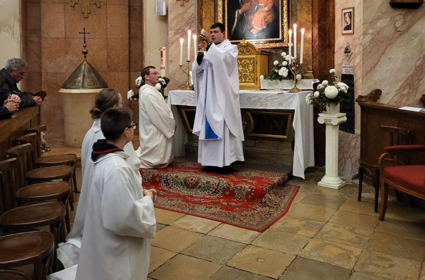 A csornai premontrei templomban a novemberi elsőszombati Mária-köszöntő szentmisét Gulyás Vilmos újmisés atya, kapuvári káplán mutatta be a Rábaközi Madonna kegyoltáránál.