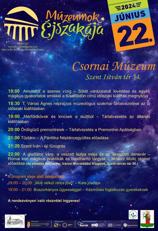 A hagyományoknak megfelelően a Csornai Múzeum is részt vesz a Múzeumok Éjszakája programban.