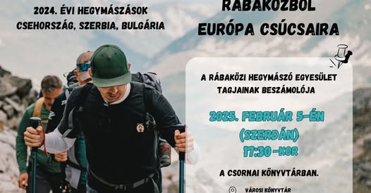 A sikeres expedíciókról a csornai könyvtárban február 5-én, szerdán 17:30-kor tartanak részletes beszámolót a Rábaközi Hegymászó Egyesület tagjai. Az eseményen a csapat megosztja élményeit, kihívásait és a legemlékezetesebb pillanatokat, valamint bemutatja a hegymászás során készült képeket.