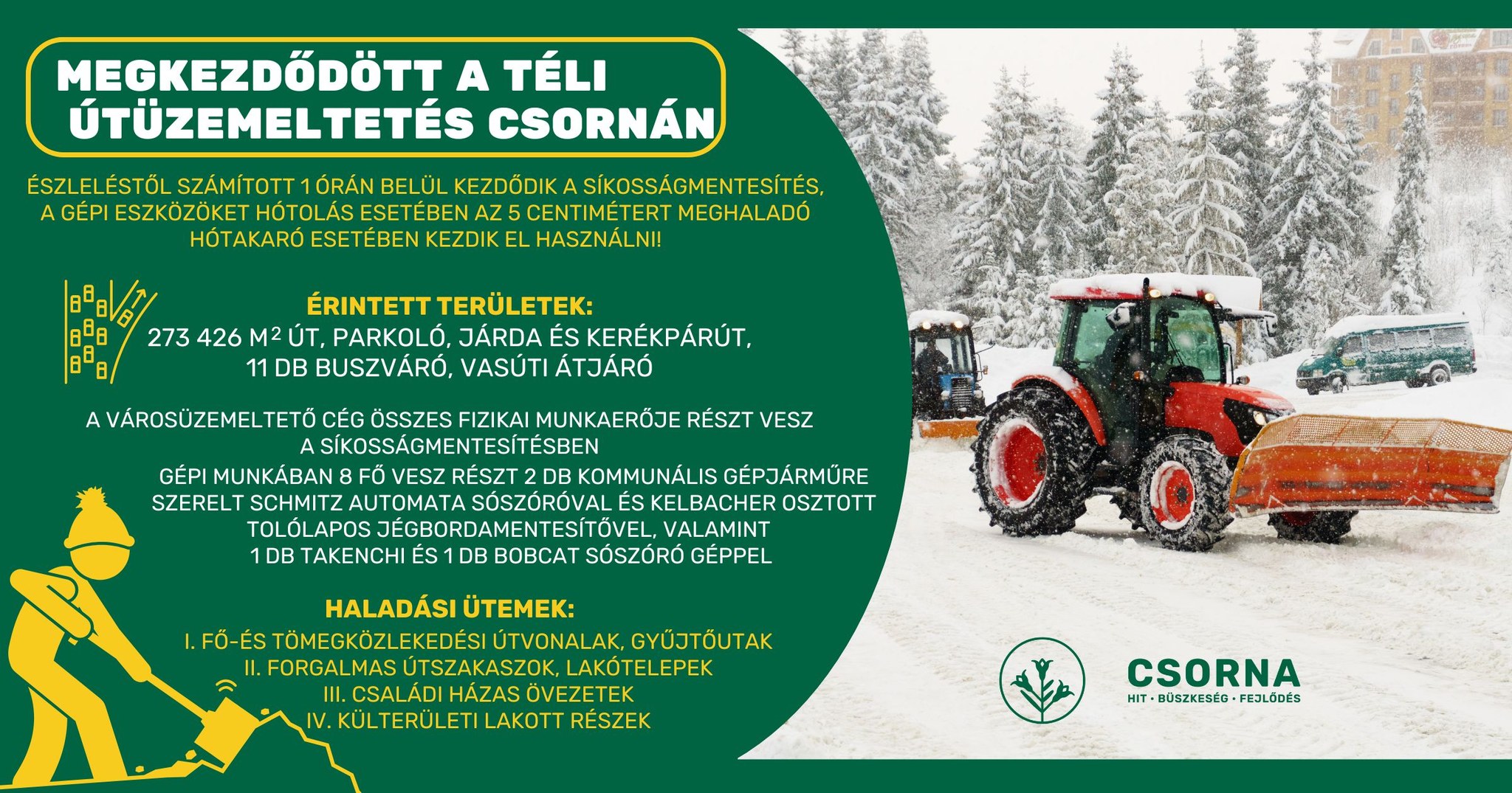 Az önkormányzat értesítette a lakókat, hogy a síkosságmentesítés észleléstől számított egy órán belül megkezdődik, 5 centimétert meghaladó hótakaró esetén pedig a gépi eszközök bevetésére is sor kerül.