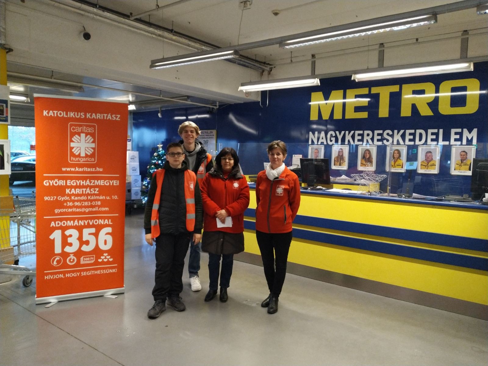A Győri Egyházmegyei Karitász Központ közvetítésével december 2-án a győri Metro Áruházban kaptak lehetőséget tartós élelmiszergyűjtésre, az itt gyűjtött 300 kg-nyi adomány egy részét is most osztották ki a helyi családoknak.