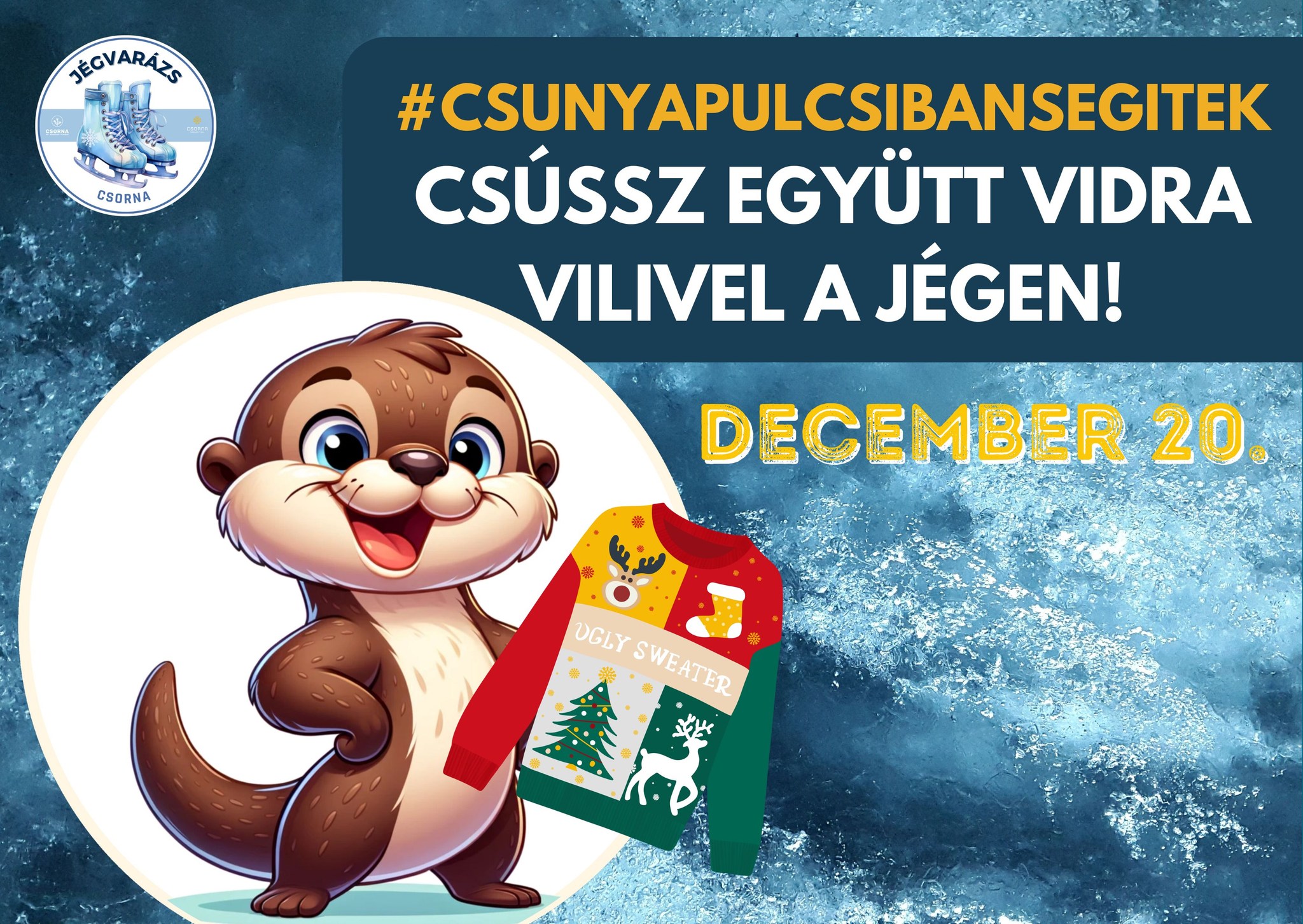 December 20-án igazán különleges program vár mindenkit a csornai jégpályán: Vidra Vili kibújik a kényelmes odújából, és veletek együtt csúszik a jégen! A jó hangulat garantált, hiszen nemcsak egy vidám korcsolyázásra invitálnak benneteket, hanem egy nemes ügy támogatására is.