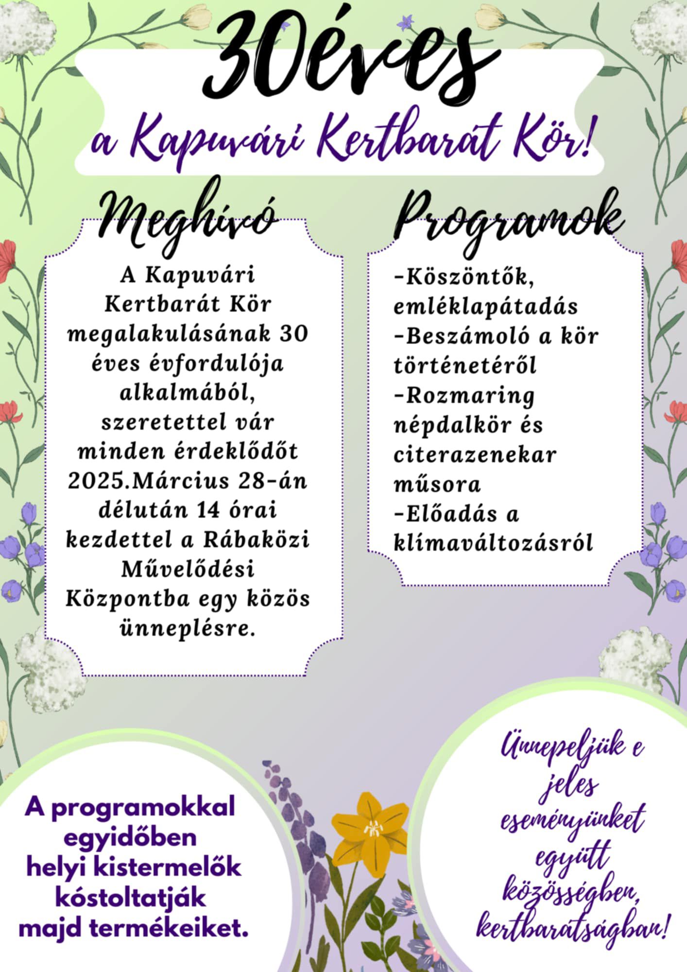 A Kapuvári Kertbarát Kör idén ünnepli fennállásának 30. évfordulóját.