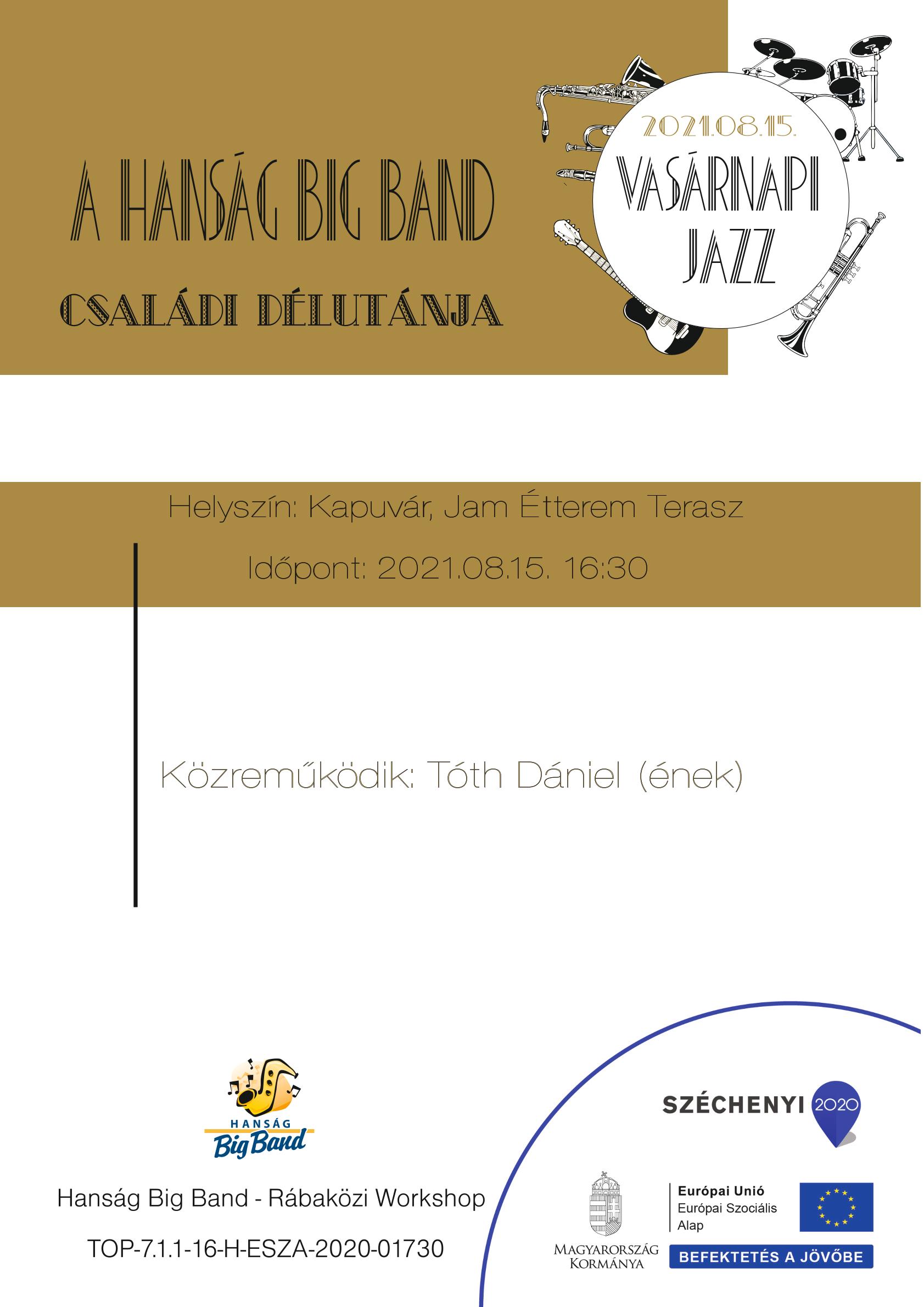2021. augusztus 15-én rendezi meg a Hanság Big Band Egyesület a Jam étterem teraszán (9330 Kapuvár, Piac tér 3.) a „Vasárnapi Jazz” elnevezésű programját.