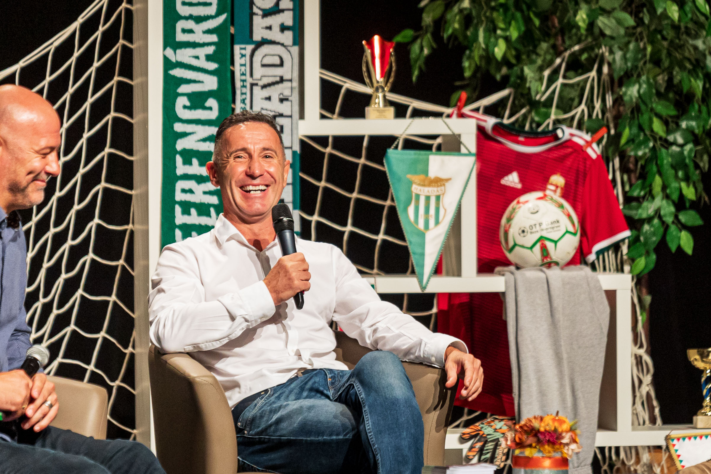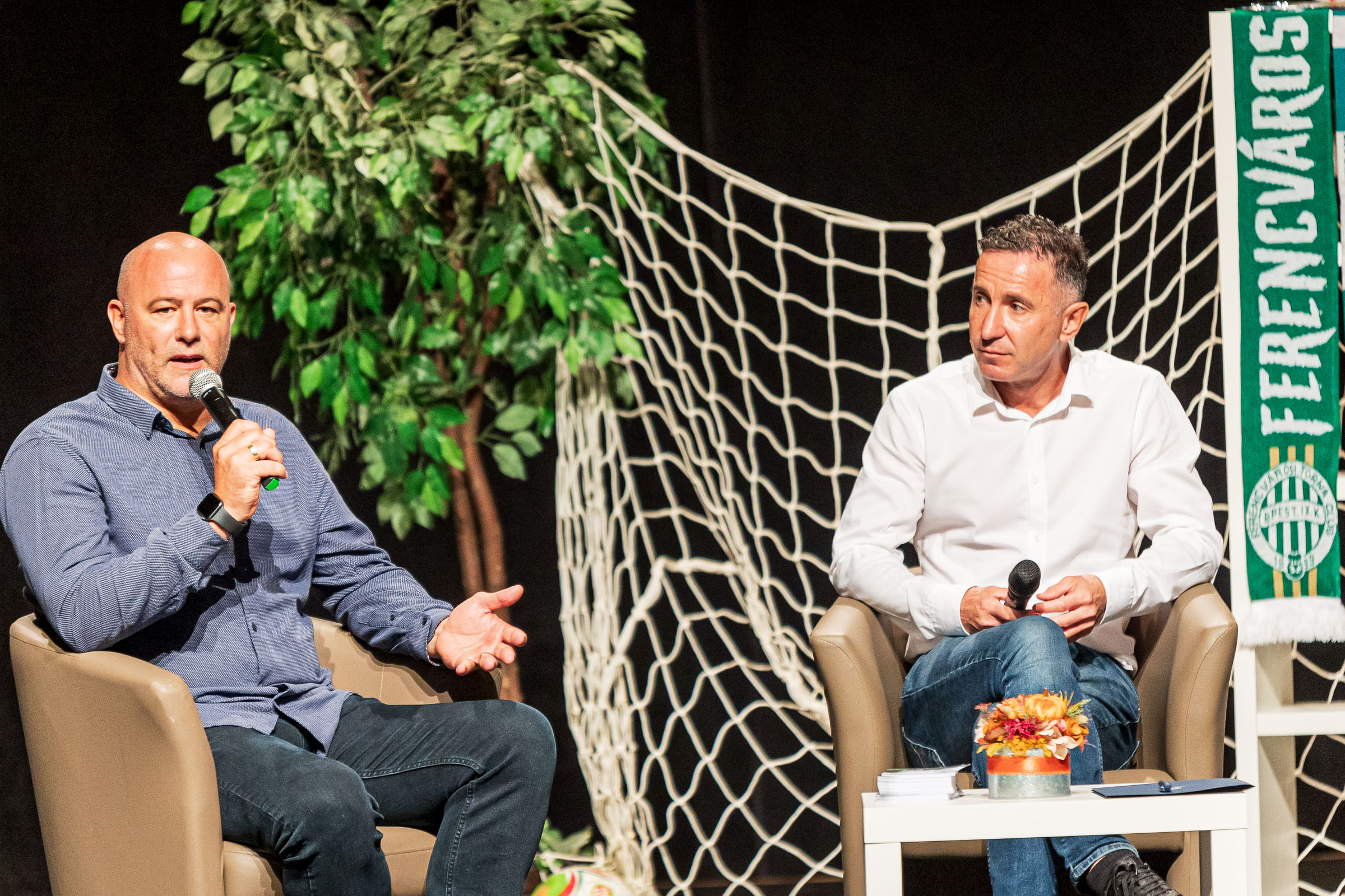 Az est hangulata azonnal magával ragadta a jelenlévőket, amint a két kiváló sportember a színpadra lépett. Gyopáros Alpár, a rendezvény házigazdája, a futball szerető emberek kérdéseit intézte a vendégek felé, és a beszélgetés során felvázolta a focinak az ország politikájában és közösségében betöltött fontos szerepét.
