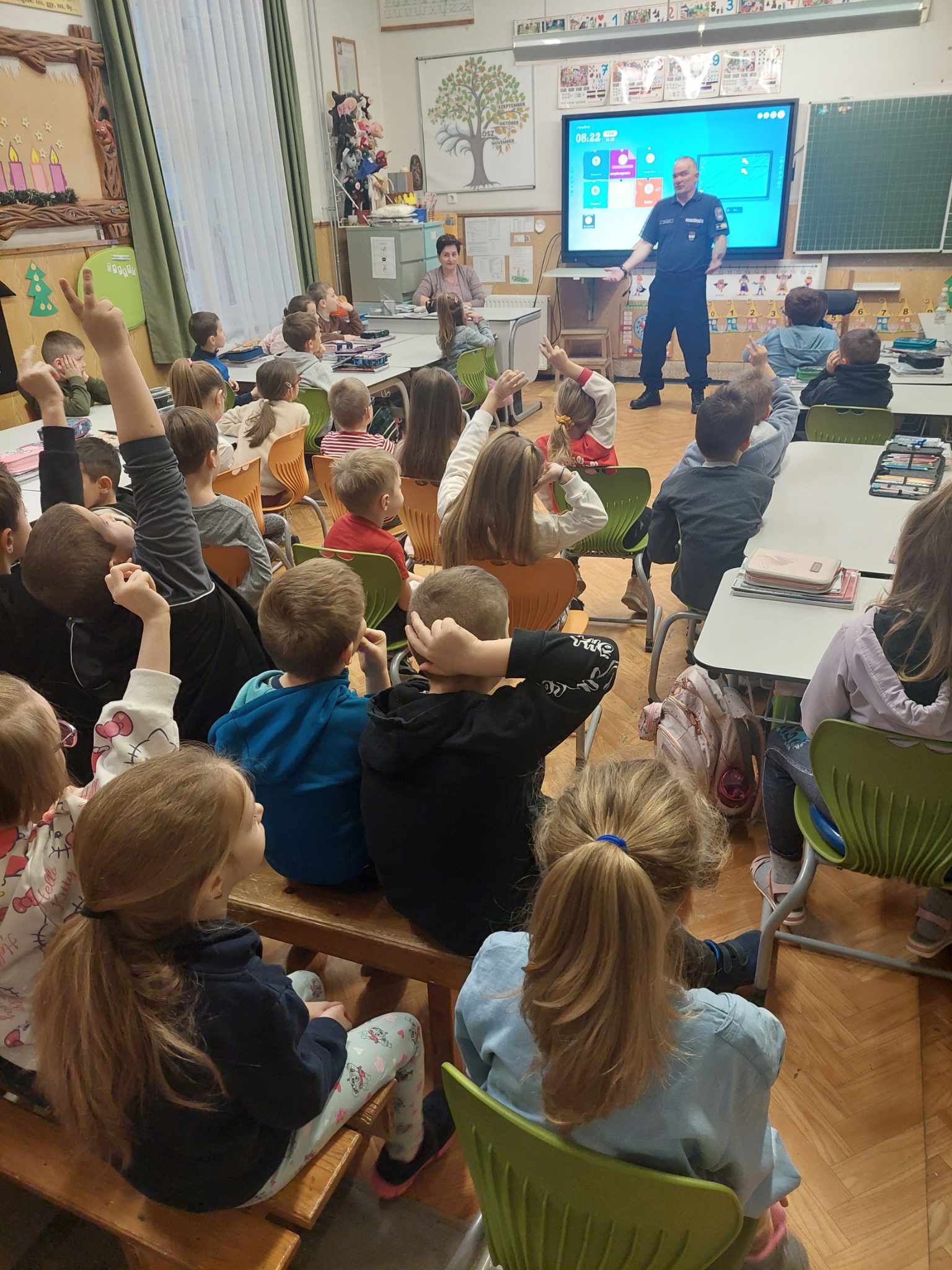 A „Balhé a suliban” című foglalkozás során az őrnagy azokról a diákok által elkövetett cselekményekről beszélt, amelyek sokszor ártalmatlannak tűnnek, de akár bűncselekménynek is minősülhetnek. A gyerekek interaktív módon tanultak arról, miért fontos a szabályok betartása és milyen következményei lehetnek a meggondolatlan viselkedésnek.