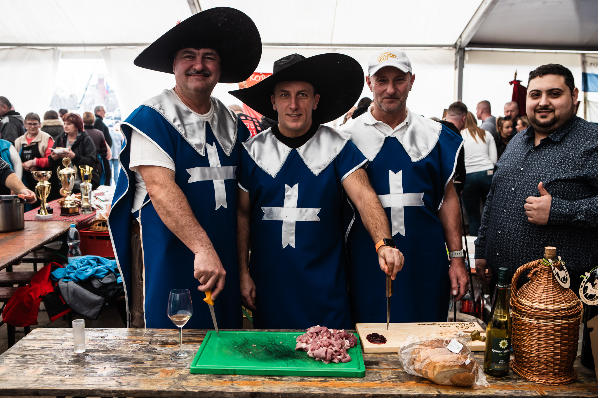 A főzőcsapatok közül voltak olyanok, akik jelmezeikkel is magukra vonták a figyelmet. A Soproni Kolbász Légió öltözékében is megidézte nevét. Negyedik alkalommal vettek részt a fesztiválon, magyaros és hagyományos kolbászt készítettek. Kupák sorakoztak asztalukon, amit nem pusztán ételeikért kaptak, hanem pálinkájukkal is eredményeket értek el, tudtuk meg Horváth Csabától a csapat tagjától.