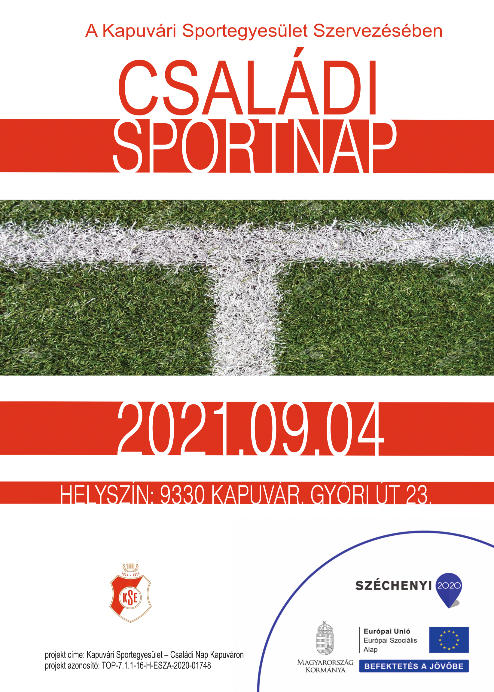 2021. szeptember 4-én rendezi meg a Kapuvári Sportgyesület a városi sportéletet támogató családi sportnapot.