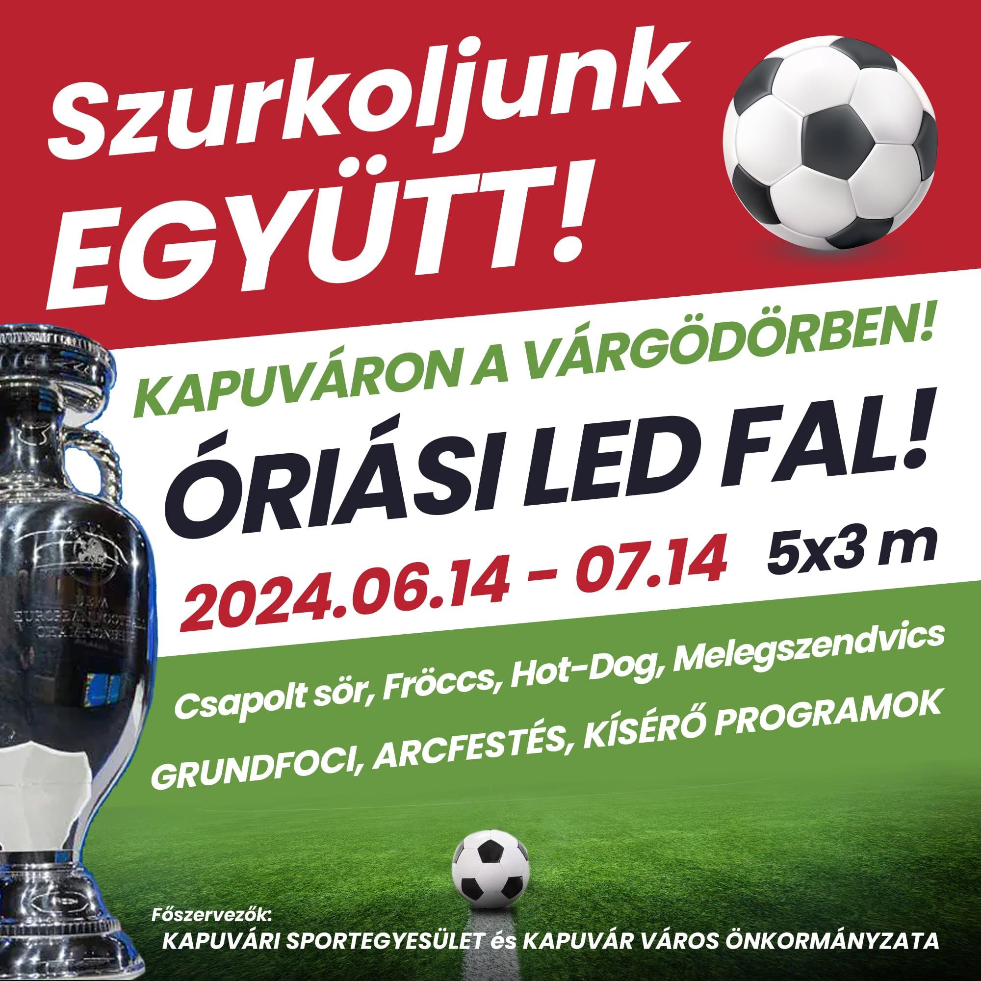 Az Európa Bajnokság mérkőzéseit óriás LEDfalon nézhetik a szurkolók a Várárokban Kapuváron.