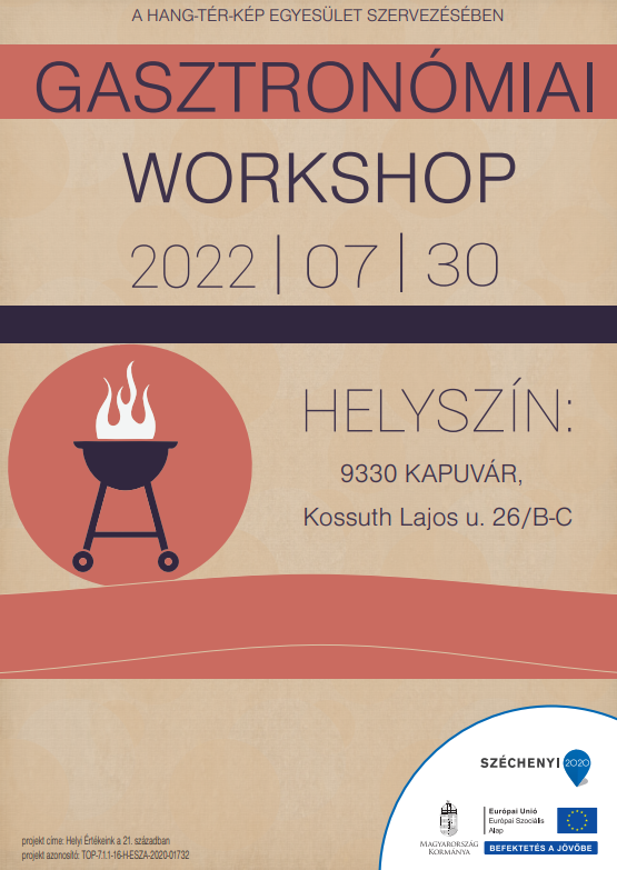 A workshop központi témája a gasztronómia, mint fontos közös kulturális pont, amely képes hidat képezni a múlt és a jelen között. A program során az érdeklődők meghívott főzőcsapatok, előadók segítségével megismerkedhetnek a tradicionális, hagyományos ételekkel, a különböző elkészítési módokkal, valamint betekintést nyerhetnek a modern gasztronómiai eszközök, technikák használatába is. A résztvevők megkóstolhatják a készülő hagyományos ételeket, valamint professzionális háttérrel és szakmai segítséggel a gyakorlatban is kipróbálhatják a program során használt eszközöket. Az ingyenes program helyszíne: Kapuvár, Kossuth Lajos utca 26/B-C alatt található szabadtéri helyszín.