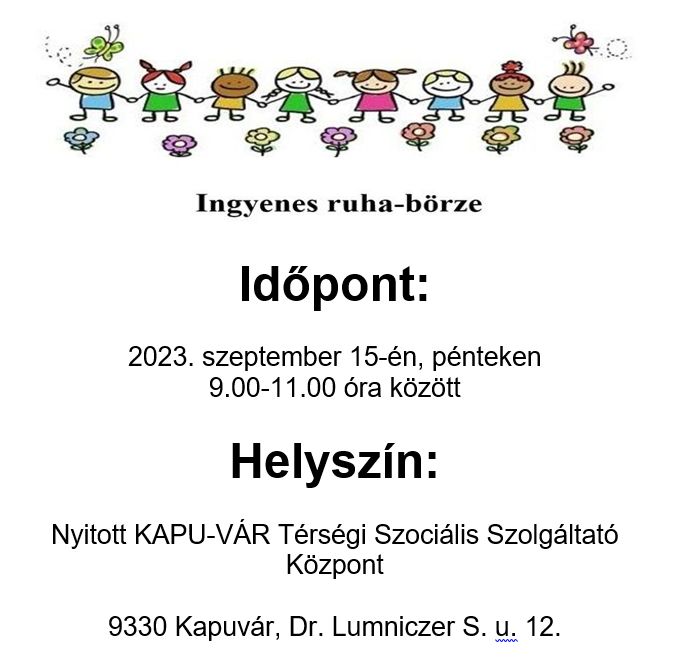 Szeptember 15-én pénteken 9.00- 11. 00 óra között ingyenes ruha börzét tartanak Kapuváron.