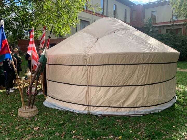 Az új jurta 5 méter átmérőjű és dupla ponyva van a tetején, amiből az egyik fóliázott, így hidegebb időben is tudják használni. Az íjászok fel is avatták az új szerzeményt.