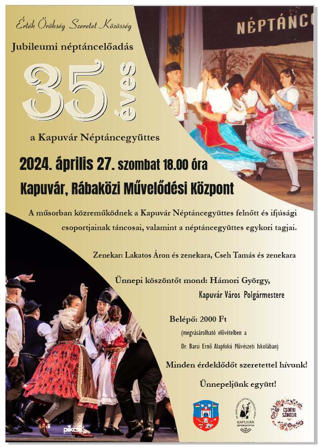 Április 27-én, szombaton este hat órakor ünnepli fennállásának 35. évfordulóját a Kapuvári Néptáncegyüttes.
