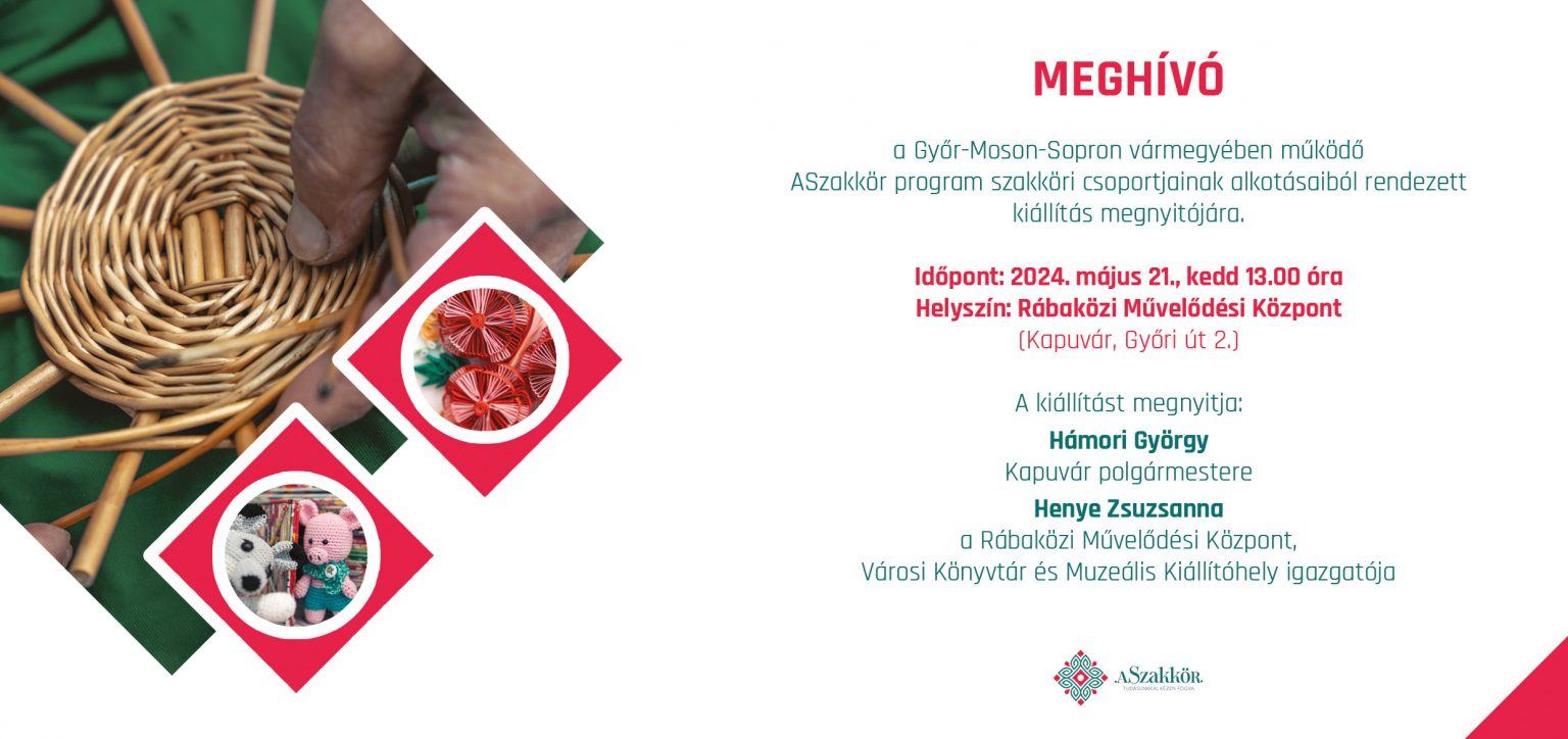 Május 21-én veszi kezdetét Kapuváron a Szakmai Műhelynap és a Vármegyei Szakkörök Kiállítása, melyet a Rábaközi Művelődési Központ, Városi Könyvtár és Muzeális Kiállítóhely aulájában rendeznek meg.
