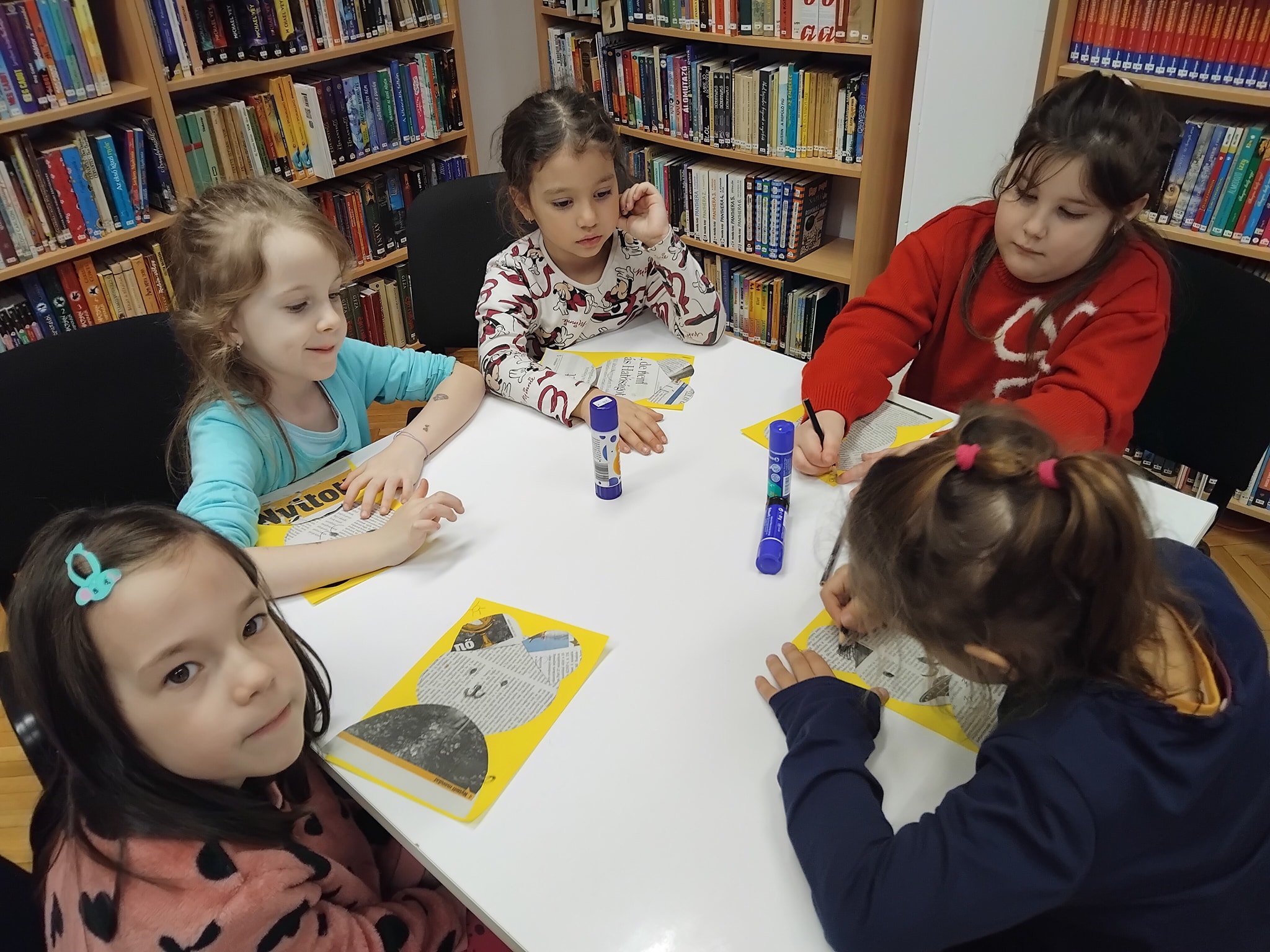 A kicsik érdeklődve hallgatták a történetet, majd szabadon válogathattak a könyvtár képeskönyvei közül, amelyek izgalmas vizuális élményt nyújtottak számukra. A meséhez kapcsolódóan egy kreatív foglalkozásra is sor került: újságpapírból mackóportrékat készítettek, amely során nemcsak a kézügyességüket fejleszthették, hanem a papír újrahasznosításának fontosságáról is beszélgettek.