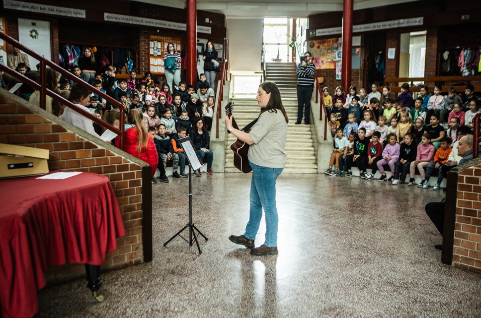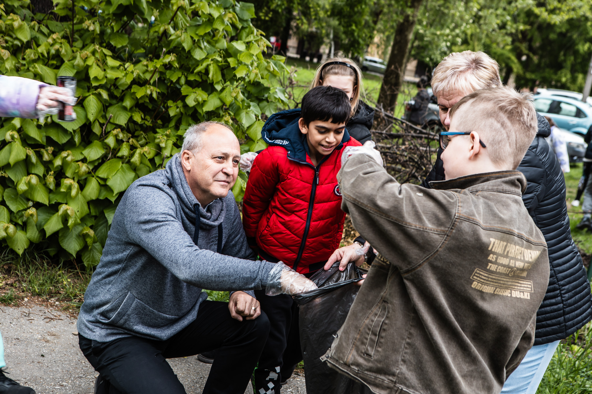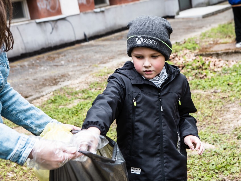 Az alsós gyerekek dalokat énekeltek, hogy ezzel is ösztönözzék egymást, majd kiosztották a zsákokat és a kesztyűket, és megkezdődött a munka.