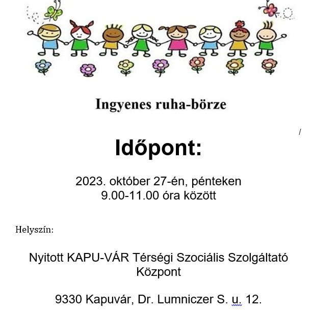 A Nyitott Kapu-Vár Térségi Szociális Szolgáltató Központ szeretettel vár mindenkit ruhabörzére október 27-én, pénteken 9:00 és 11:00 óra között.