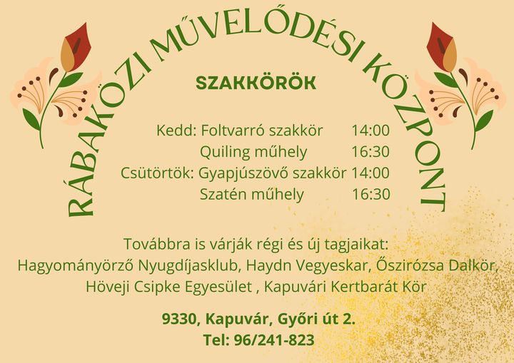 A kapuvári Rábaközi Művelődési Központ változatos szakköröket és műhelyeket kínál az érdeklődők számára.