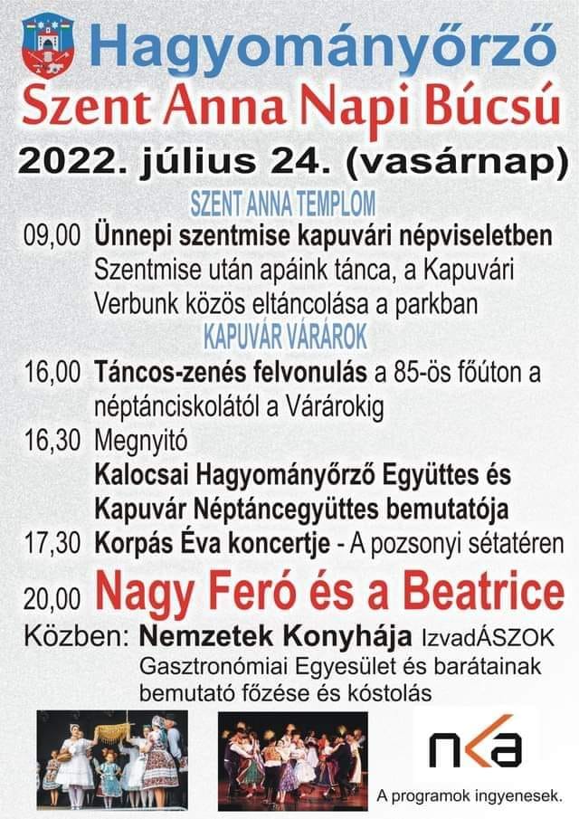 Szent Anna napi búcsú Kapuváron. itt vannak a programok