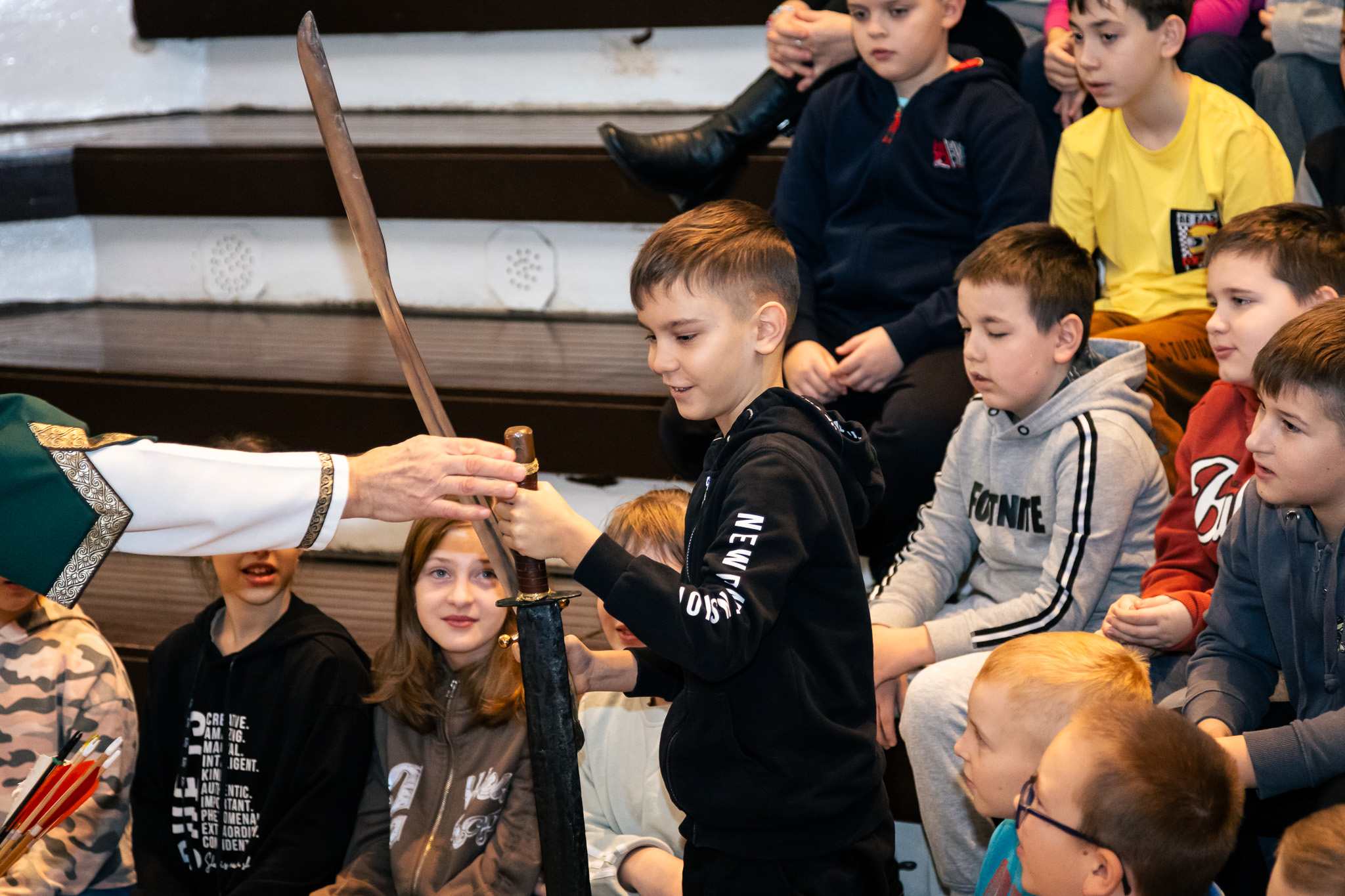 Különleges élményben volt része a Széchenyi István Általános Iskola harmadik és negyedik osztályos diákjainak kedden reggel, amikor a Hanyi Íjászok Hagyományőrző Egyesület rendhagyó történelemórát tartott számukra az iskola aulájában.