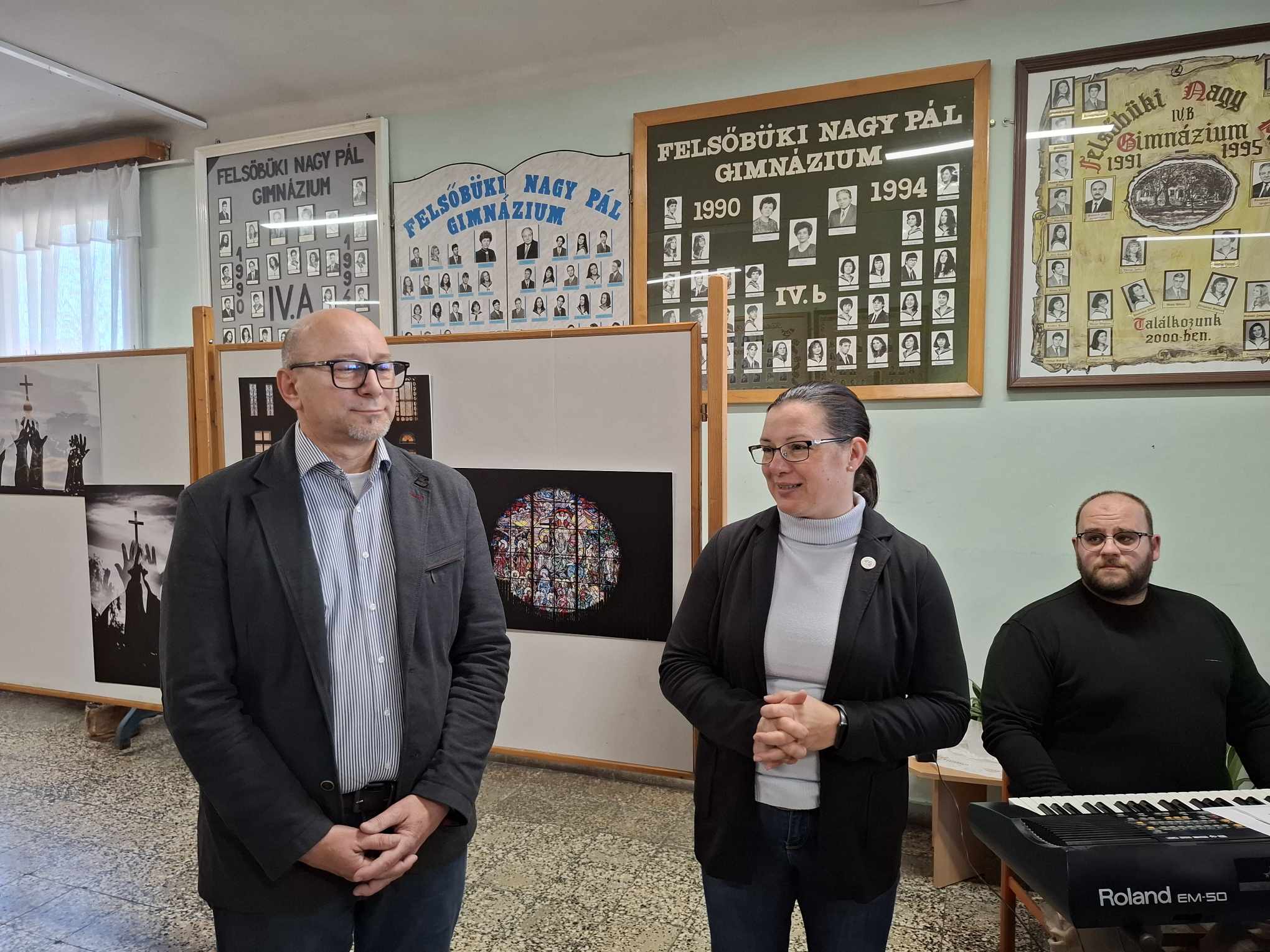 A megnyitón a gimnázium 11.B és 12.B osztályának tanulói is részt vettek, akik elsőként csodálhatták meg a kiállított fotográfiákat. Az eseményt még emelkedettebbé tette a szkóla gregorián dallamainak előadása, amely méltó zenei kíséretet biztosított a műalkotások bemutatásához. A szkóla felkészítését Borsodiné Szabó Judit pedagógus irányította, aki évek óta elhivatottan gondozza az iskola zenei hagyományait.
