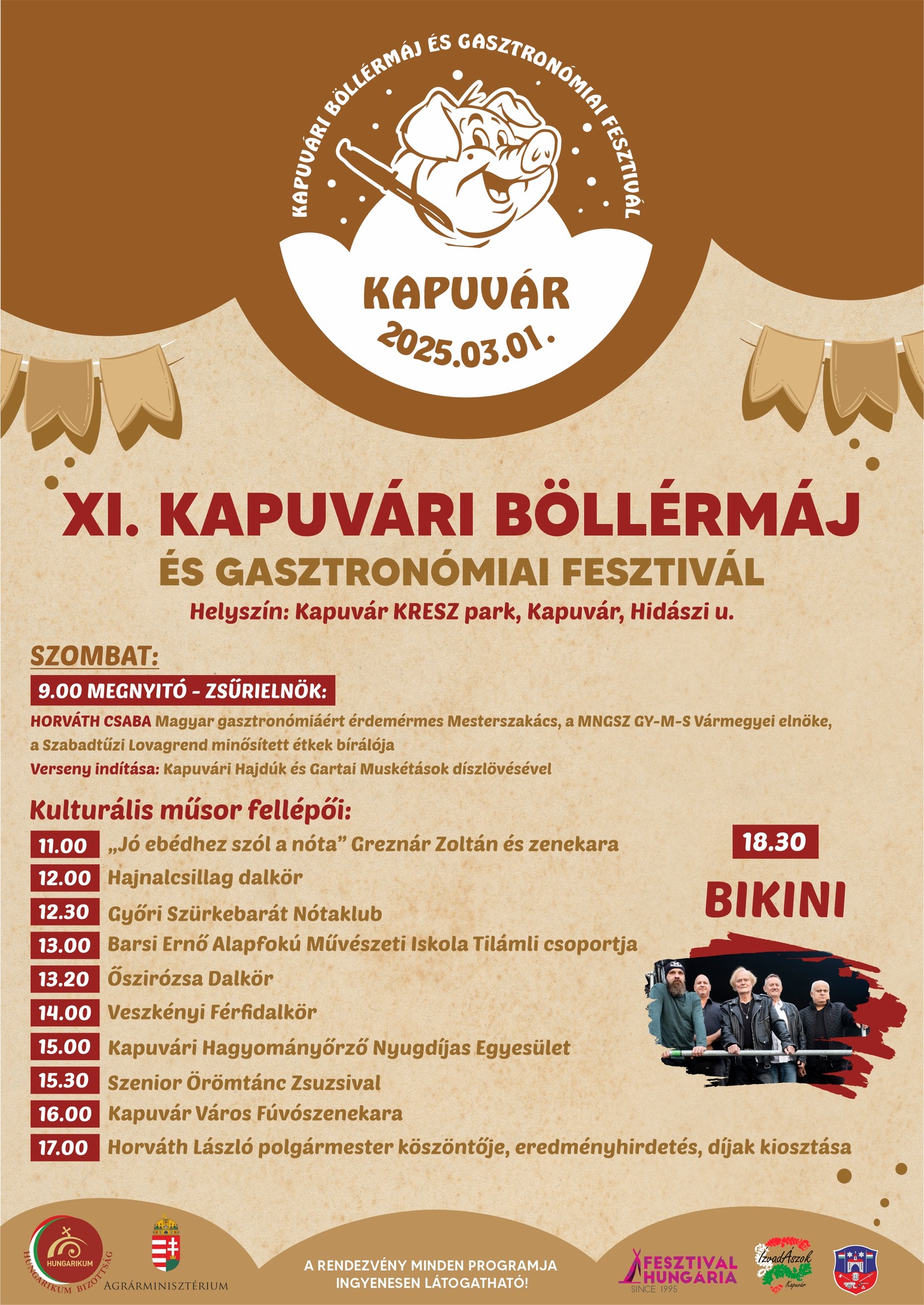 A nap csúcspontja az este 18:30-kor kezdődő Bikini együttes koncertje, amely garantáltan fergeteges hangulatot teremt.