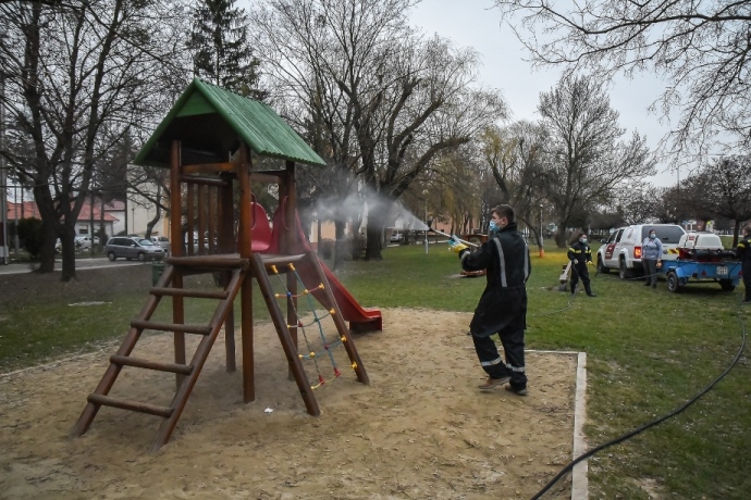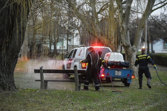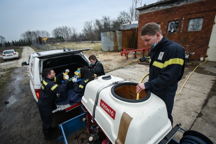 A csornai önkéntes tűzoltók az önkormányzat megbízásából újra fertőtlenítik Csorna közterületeit.