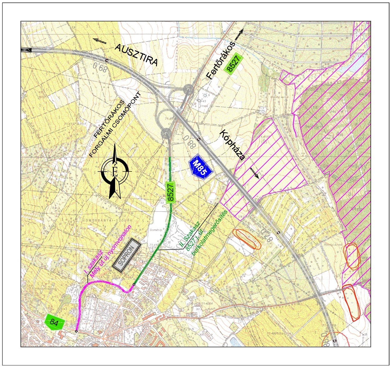 A mostani közleményből kiderül, az autóút Sopron-kelet és Fertőrákos csomópont közötti, illetve a Fertőrákos csomópont és az országhatár közötti szakaszai eltérő időpontban készülnek el. Emiatt Sopron belterületén a 84-es főút és 8527-es út körforgalmú csomópontjában a megnövekedett forgalom hatására a jelenlegi kialakítás áteresztő képessége várhatóan nem lesz megfelelő, és mivel a körforgalmú csomópont átépítése nem oldható meg, ezért a forgalom átvezetésére egyéb közlekedésfejlesztési megoldás kialakítására volt szükség.