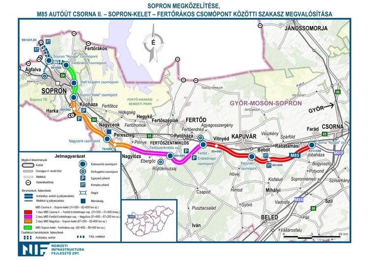 Az M85 autóút Csorna és Fertőrákos csomópont közötti szakaszának kiépítése négy részben történik meg. A jelenlegi IV. szakaszon Sopron-kelet és Fertőrákos csomópont közötti 6,4 kilométeren a Dömper Kft. és a Subterra-Raab Kft. konzorciuma (DS Konzorcium) építkezik. A közlemény szerint most
