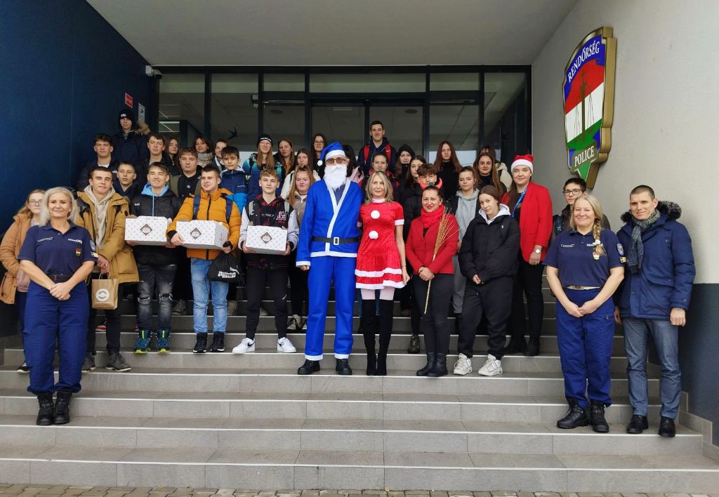 Míg a játék javában folyt, a Kék Mikulás rendőr barátaival ellátogatott a Handler Nándor Technikumba, ahol a diákok és a nevelőtestület a bűn- és balesetmegelőzési tanácsokat mellé csokoládét is kaptak ajándékba.