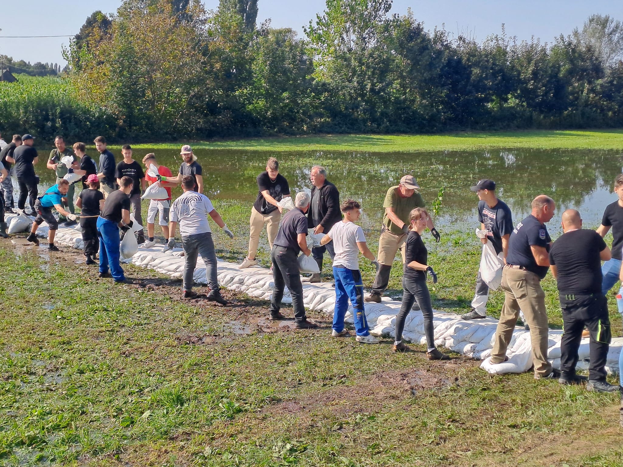 Délután a nyúlgát építésében segítettek, hogy megerősítsék a helyi árvízvédelmi rendszert. Az egész napos munka során a résztvevők kiemelkedő csapatmunkával és elhivatottsággal járultak hozzá a közösség védelméhez.