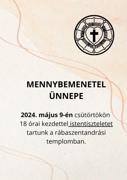 Május 9-én, csütörtökön, délután hat órakor istentisztelettel várják a hívőket a rábaszentandrási Evangélikus Egyházközségben, hogy együtt ünnepeljük a mennybemeneteli ünnepet.
