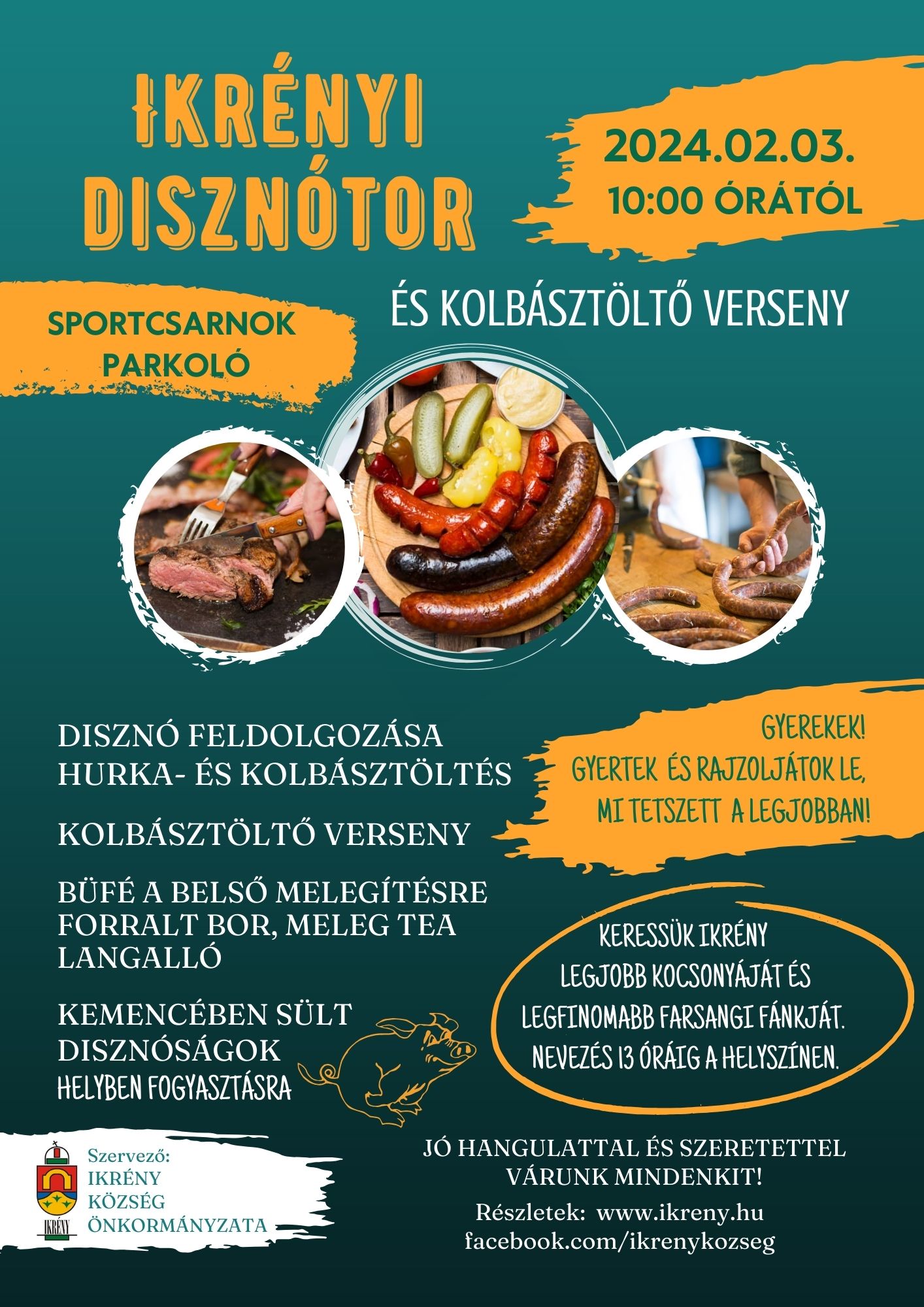 Kolbásztöltő versenyt rendeznek Ikrényben holnap délelőtt 10 órától a Sportcsarnok parkolójában. A résztvevő csapatok a felállított asztaloknál megkapják a hozzávalókat és a szükséges eszközöket, hogy elkészítsék a finomságokat.
